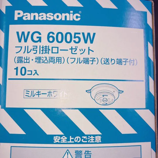 パナソニック「WG6005W」の場合は、吊り下げ照明の耐荷重は5㎏(補強コード使用時)、直付照明の耐荷重は10㎏(ホルダー係止部を利用する場合)です。