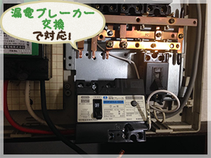 写真の事例では、「漏電ブレーカーが上がらず、家の中の電気が使えなくて困っている」といったトラブルに対応しました。 漏電ブレーカーが上がらないといことは、家の中で漏電が起こっているかもしれないので、現場に急行しました。 早速ブレーカーの調査を行ったところ、ブレーカーが上がらない原因は漏電ブレーカーの故障でした。 調査の結果、漏電は起きていないことが判明したので今回は故障した漏電ブレーカーの交換を行い、作業後無事に家の電気が使えるようになったことを確認して、作業完了とさせていただきました。