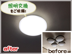 お客様のもとへお伺いして調査すると、「リビングの照明が劣化して、漏電を引き起こしている」状況でした。このままだと火災にもつながる危険があるため、照明の交換を行いました。