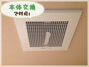 写真の事例では、「浴室に設置してある換気扇が回らなくなってしまった」といったトラブルに対応しました。
