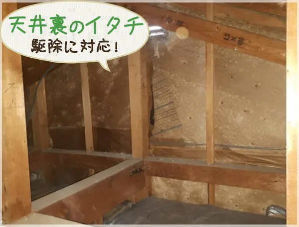 この事例では「壁や天井から物音がするので駆除対応してほしい」とのご依頼をいただき対応しました。