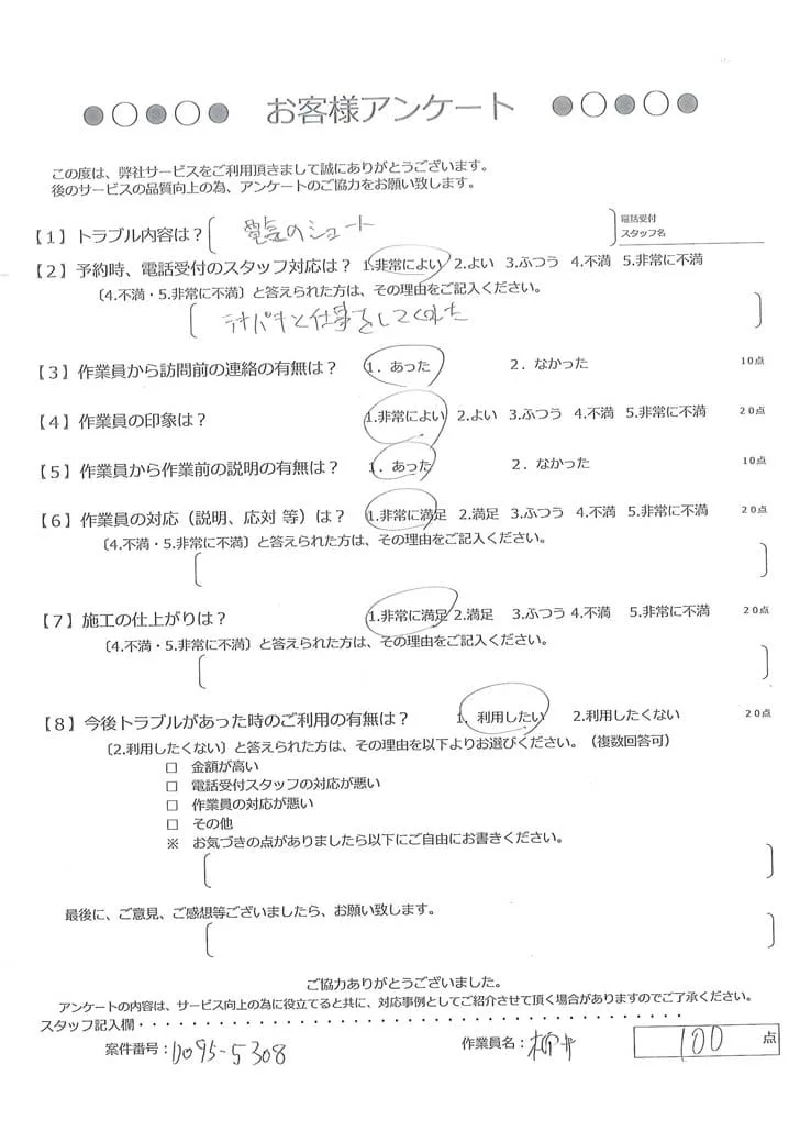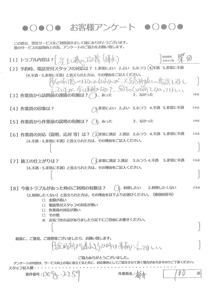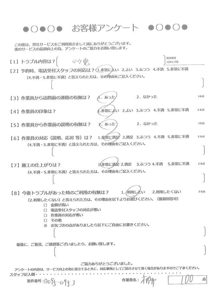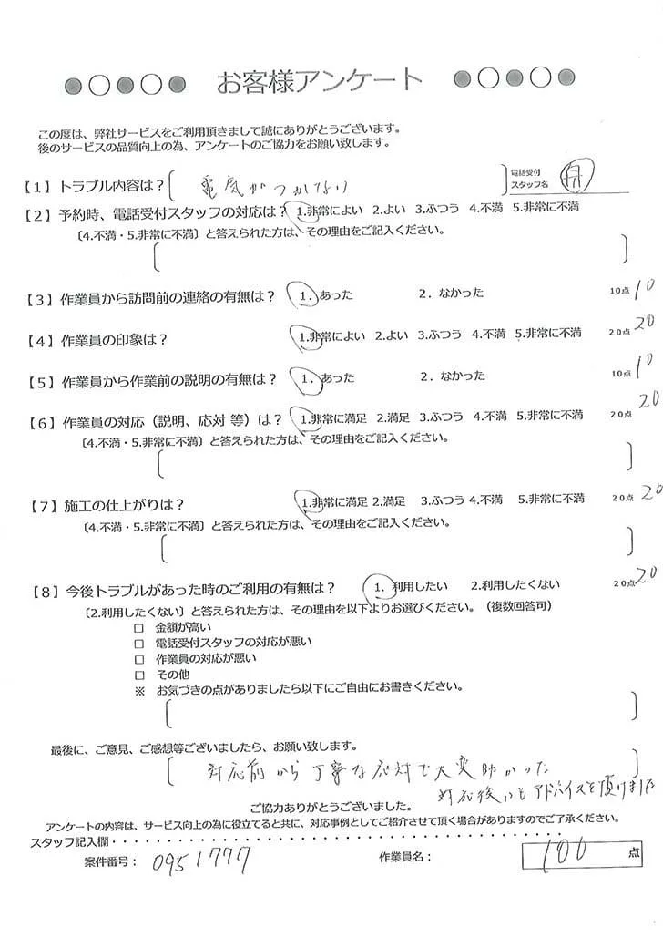 依頼の詳細: 電気がショートした。ブレーカーは上がっている