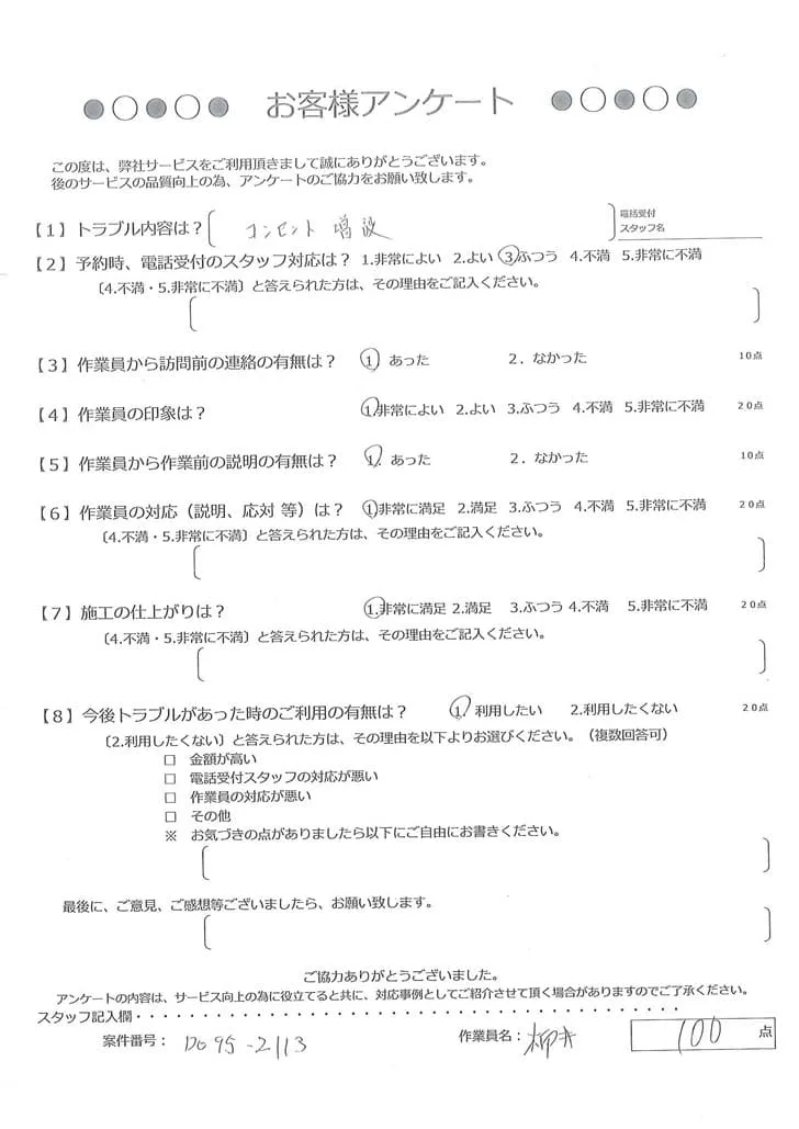 依頼の詳細: コンセントの増設を1箇所お願いしたい