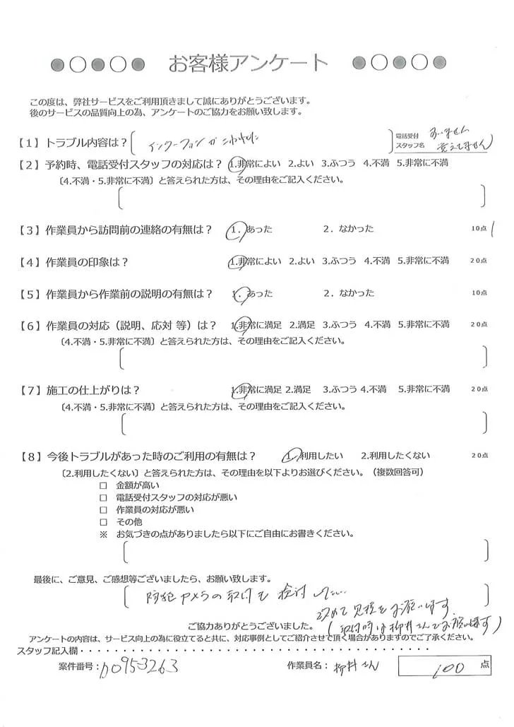 依頼の詳細: インターホンが故障したので、モニター付き、不在時などにスマーフォンで確認できるタイプのものに交換...
