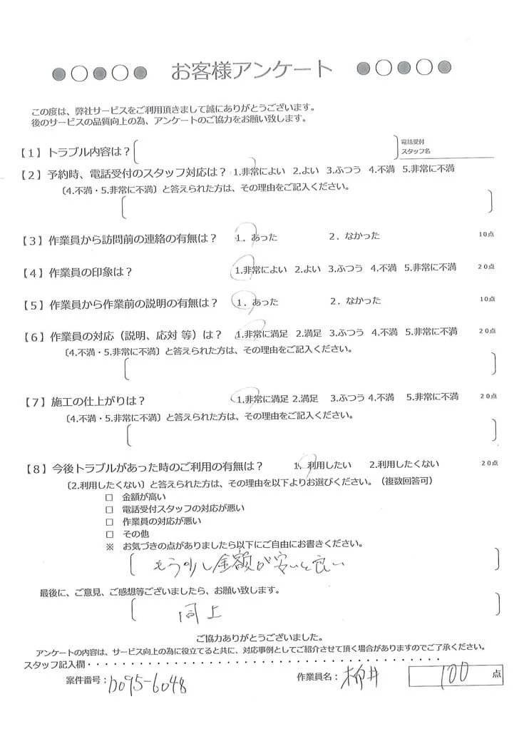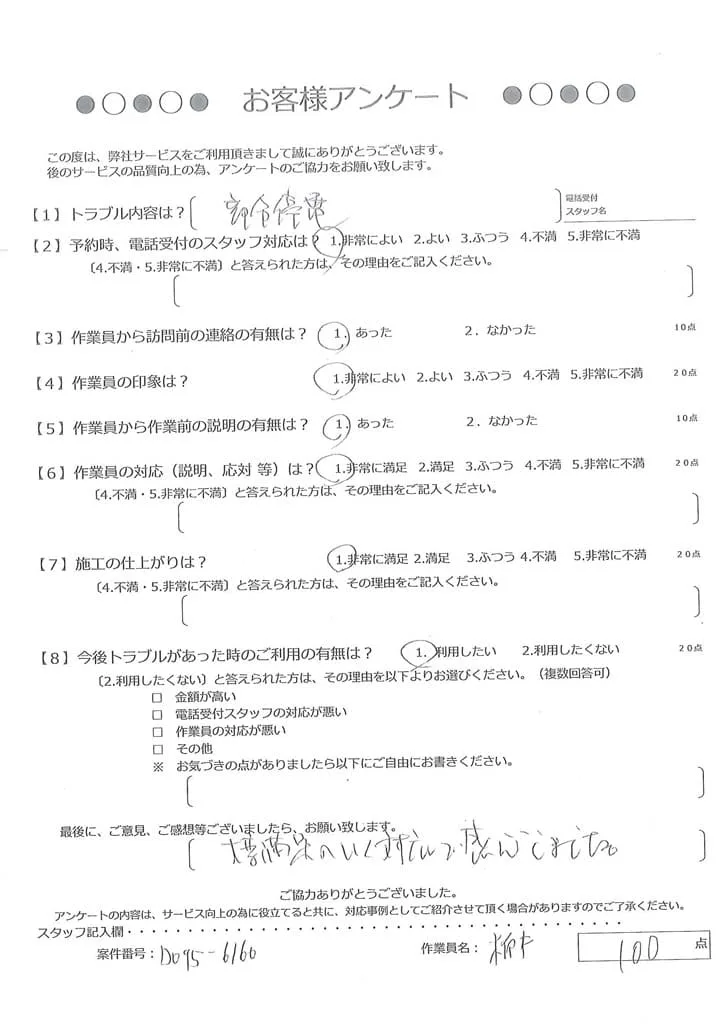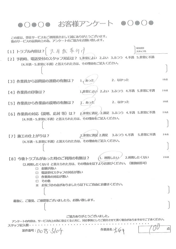 依頼の詳細: 漏電で電気関係のものが使えないので修理してほしいとのご依頼。