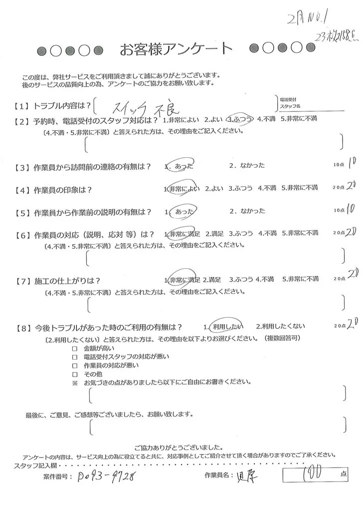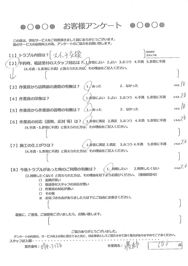 依頼の詳細: スイッチが1箇所故障してしまったので修理をお願いしたい