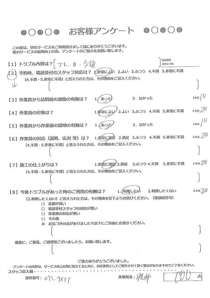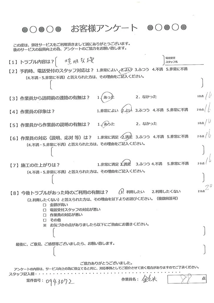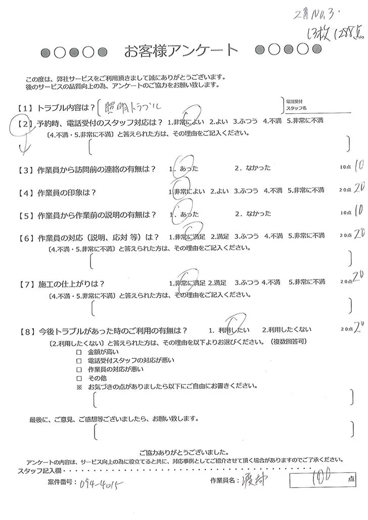 依頼の詳細: 電気が点くところと点かないところがあるので調査してほしいとのこと。