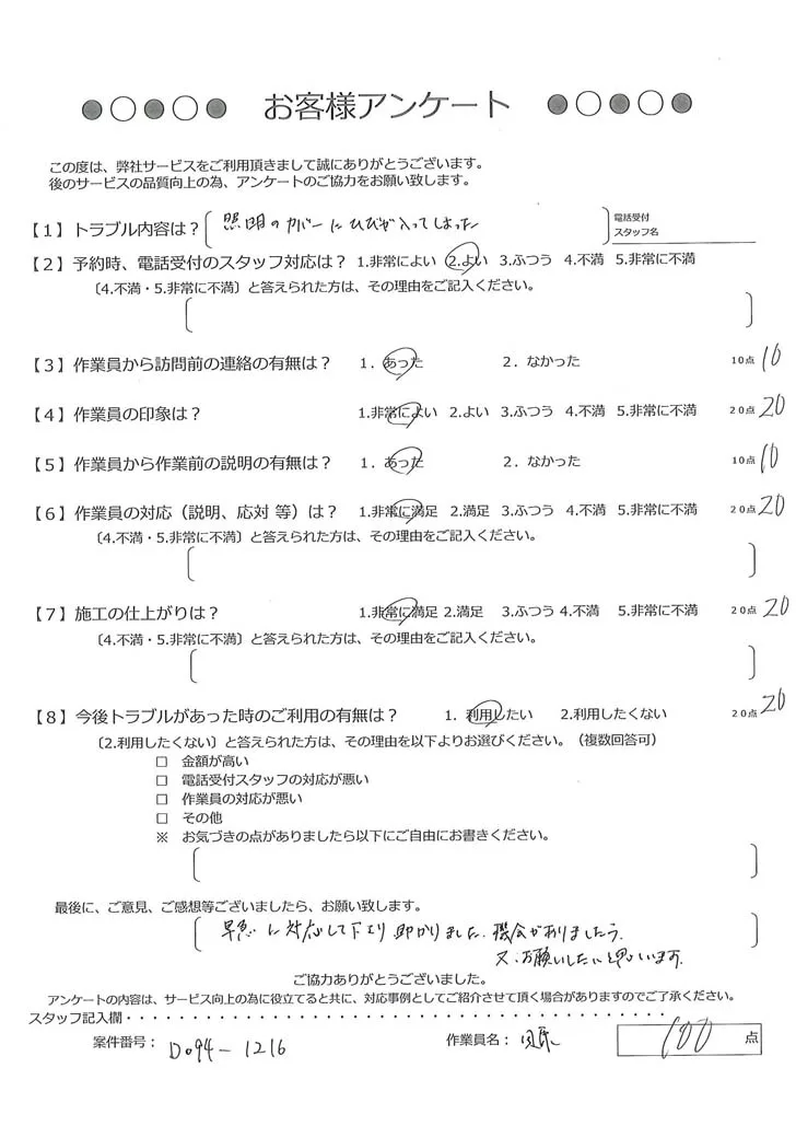 依頼の詳細: 照明カバーが破損してしまったので、交換をお願いしたい