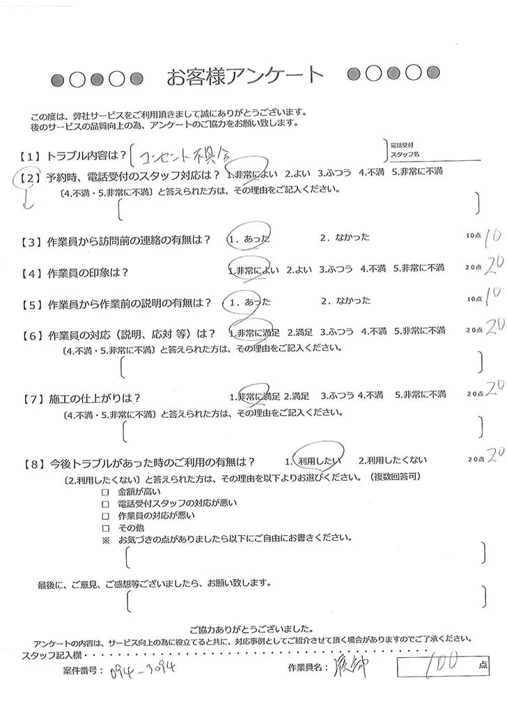 『コンセント不具合』