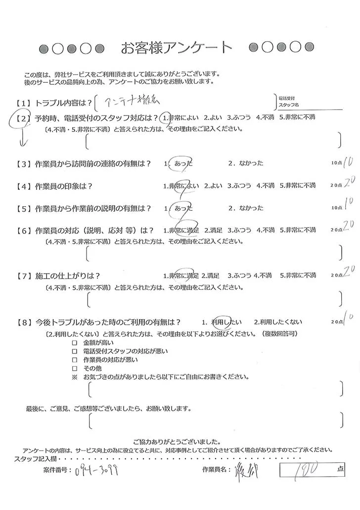 依頼の詳細: 屋根上のアンテナを撤去してほしいとのご依頼。