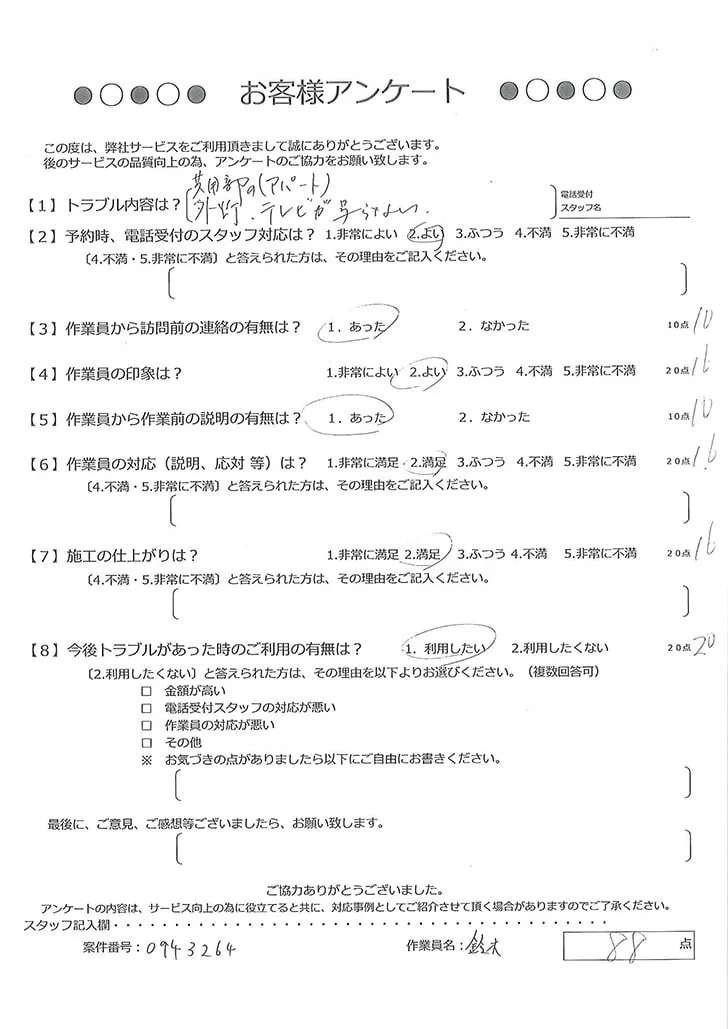 依頼の詳細: テレビドアホンの呼び出し音が鳴らないため交換希望とのこと。