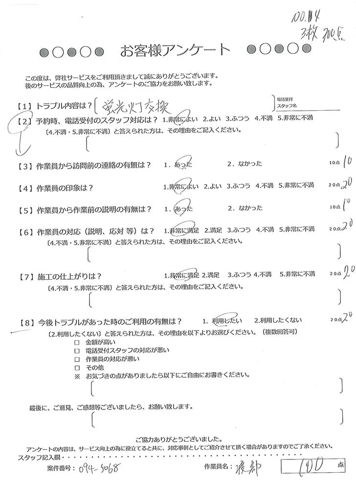 依頼の詳細: 店の看板の蛍光灯が点かなくなってしまったので交換したいとのこと。