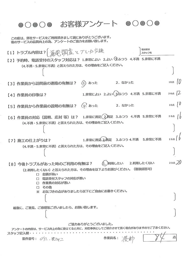 依頼の詳細: 漏電ブレーカーが落ちてしまう