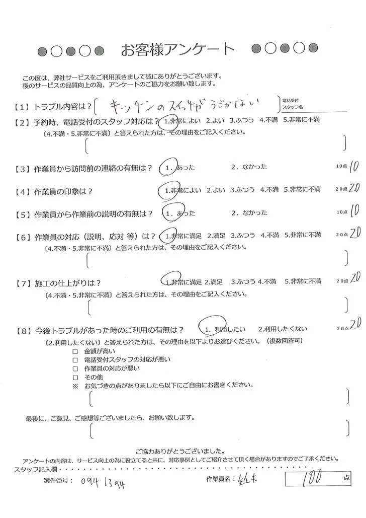 依頼の詳細: キッチンのスイッチが壊れてしまったので、交換をお願いしたい
