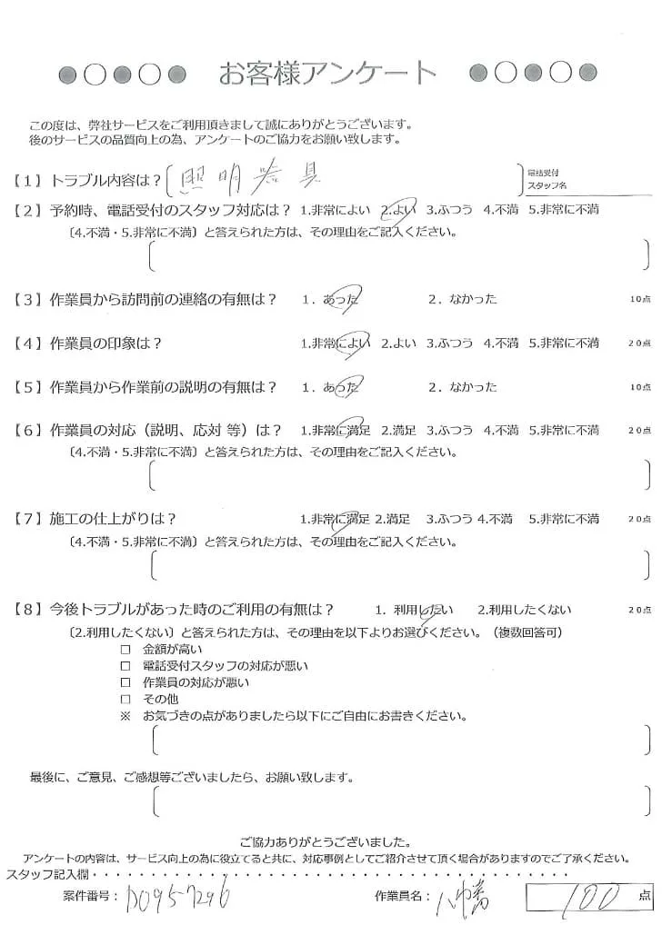 依頼の詳細: 自宅照明のスイッチを修理してもらいたいとのご依頼。
