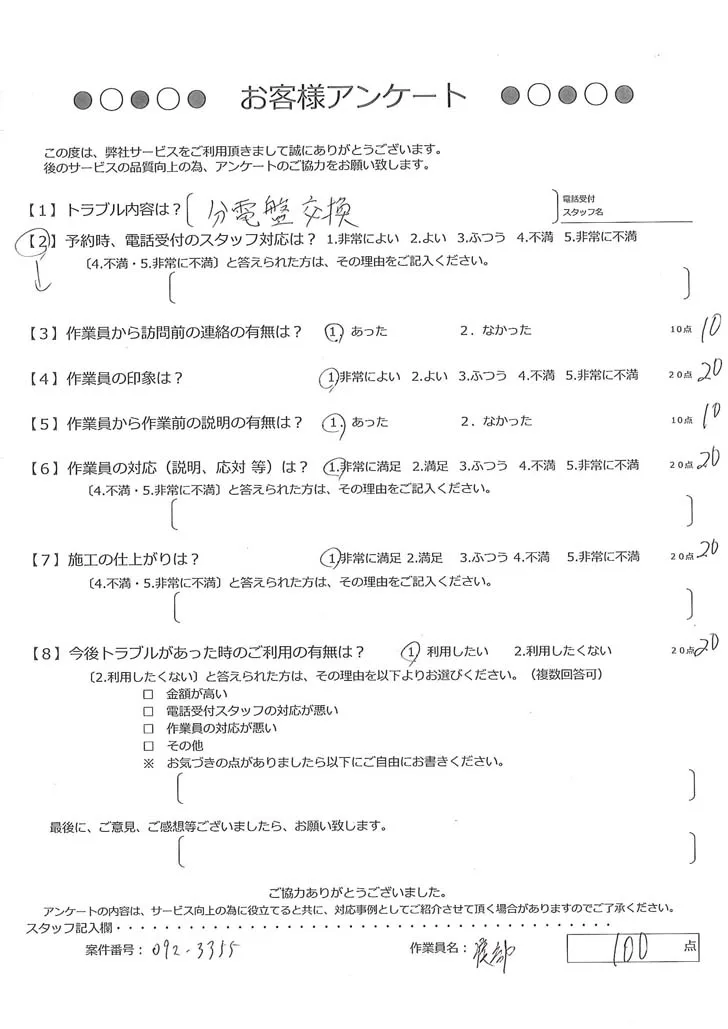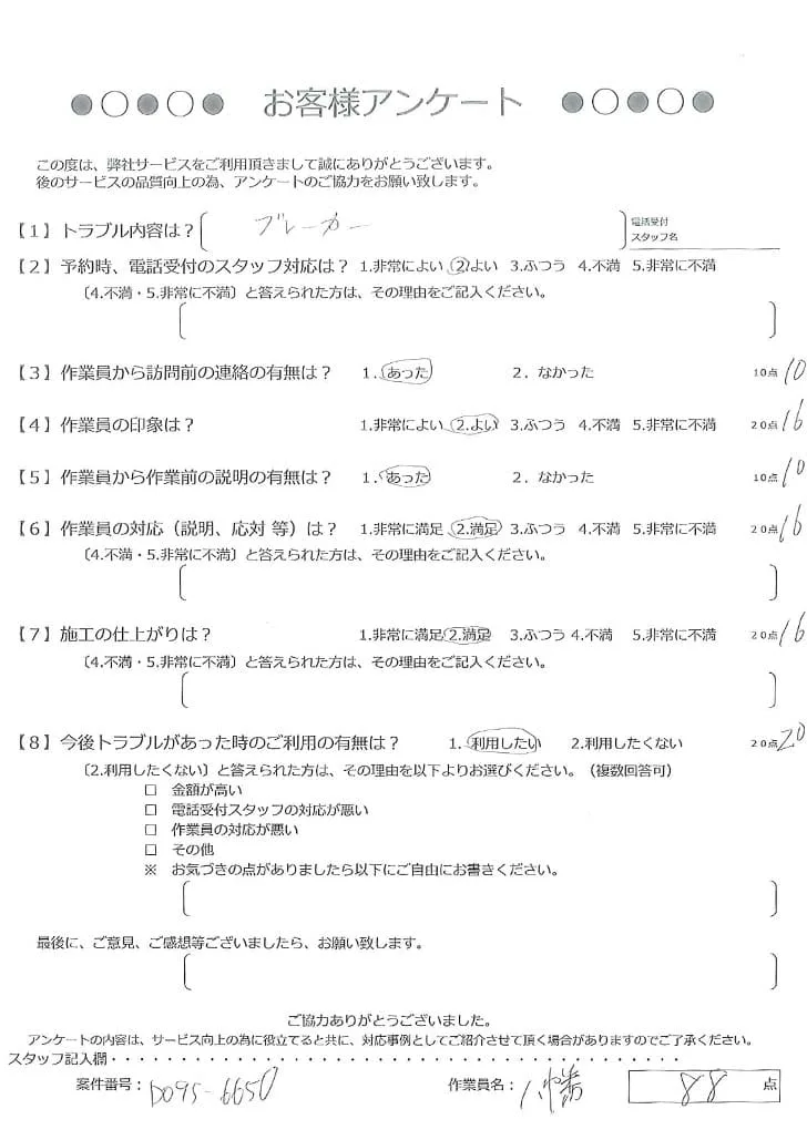 依頼の詳細: 突然ブレーカーが落ちた。時間が経っても復旧しない状態