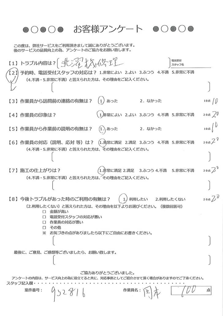 依頼の詳細: 洗濯機が途中で止まってしまい、脱水できない