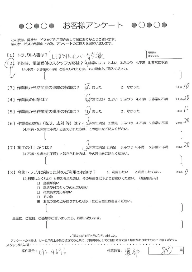 依頼の詳細: LED電球とライトインバータの交換をお願いしたい