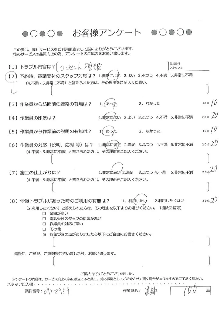 依頼の詳細: コンセントの増設を1箇所お願いしたい