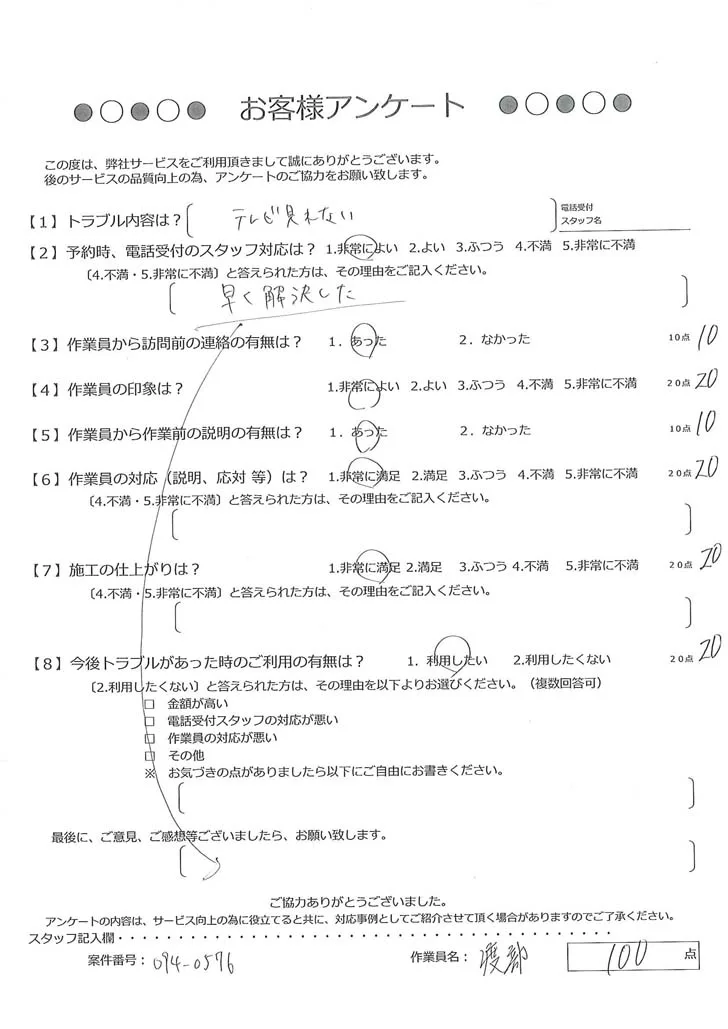 依頼の詳細: テレビの映りが悪いので、調査をお願いしたい