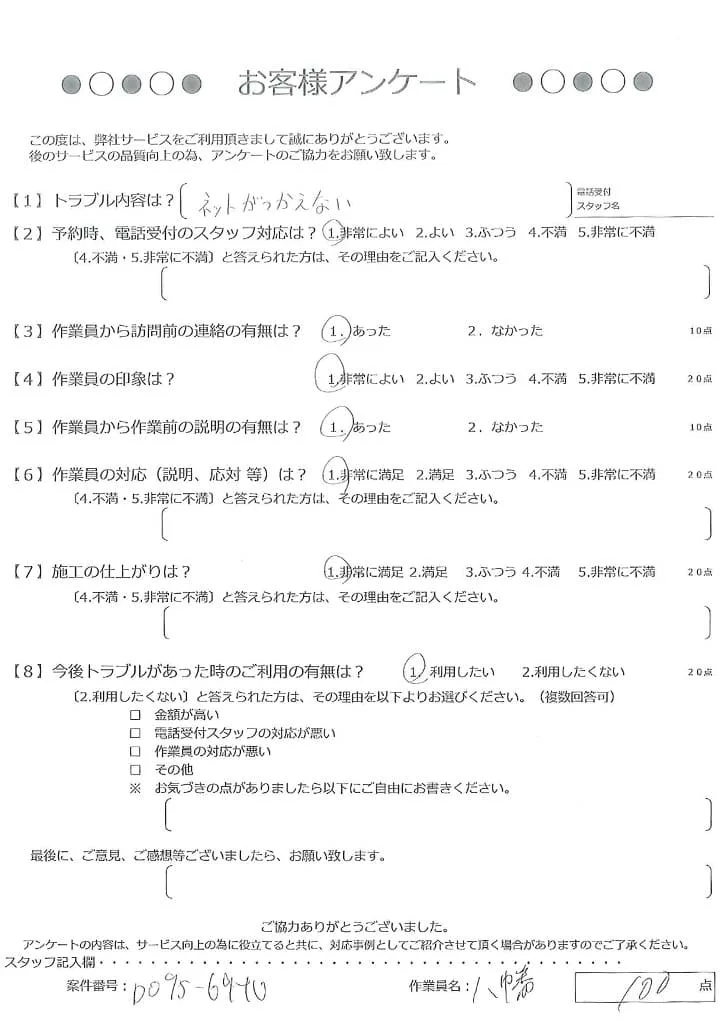 依頼の詳細: E202とエラー表示が出て電波受信できない