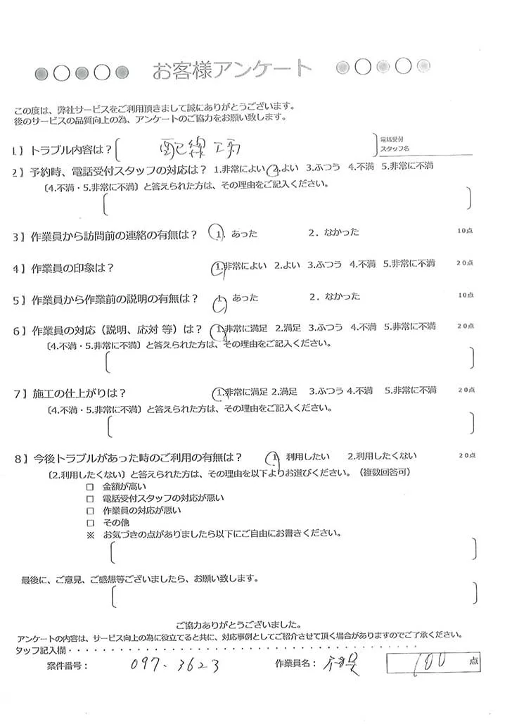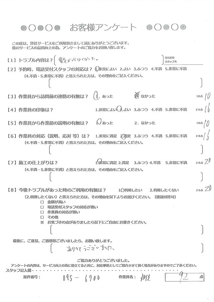 依頼の詳細: 部屋のコンセントが使用できなくなったので、修理してほしい。