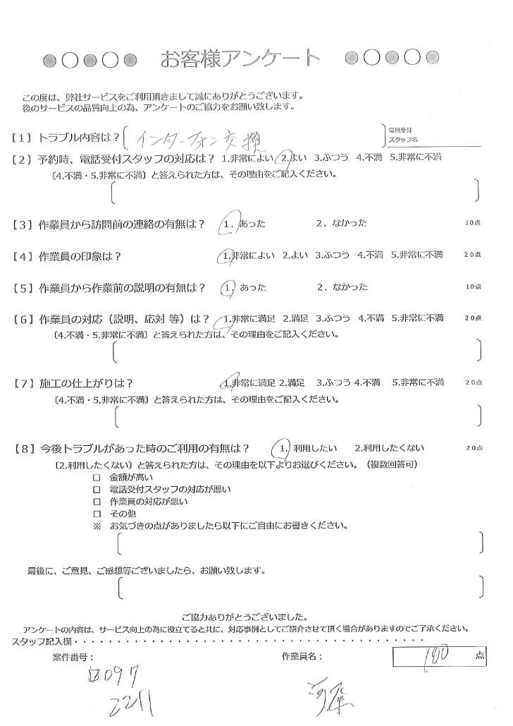 依頼の詳細: インターホンをカメラ付きのものに交換したい。