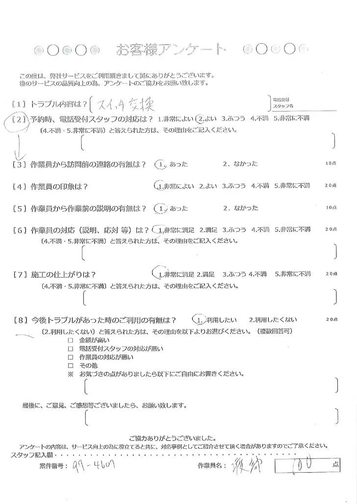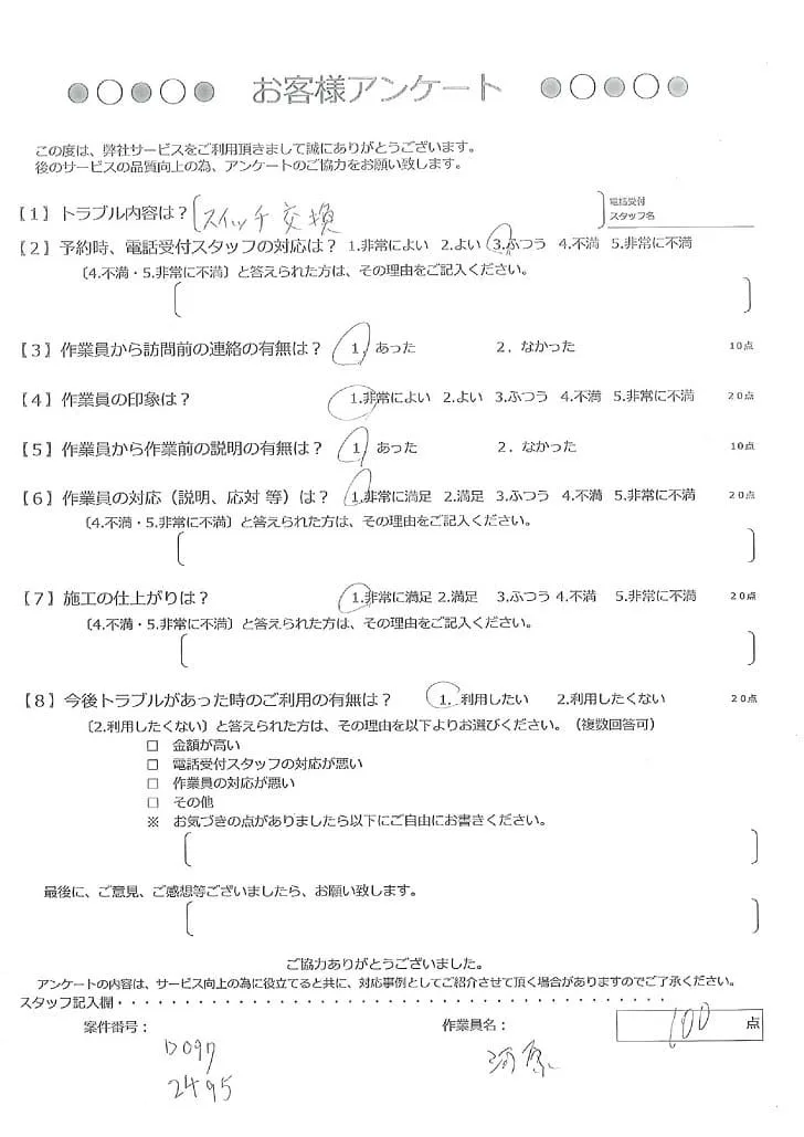 依頼の詳細: 照明のスイッチを交換してほしい。