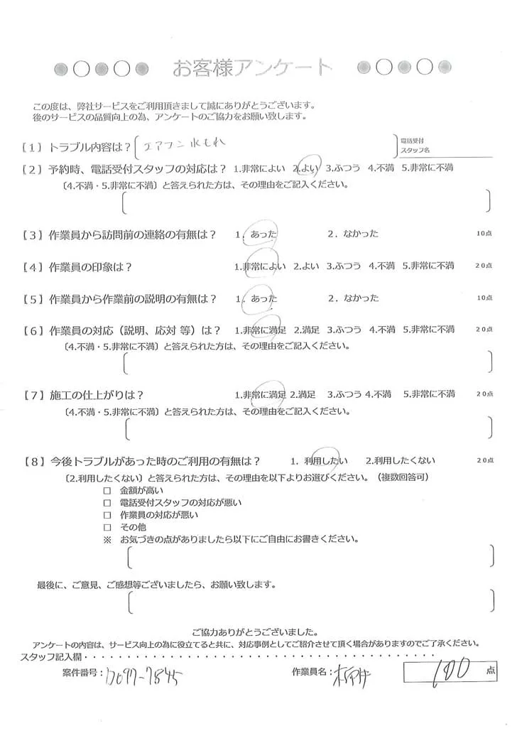 依頼の詳細: 家庭用エアコン室内機の正面から見て右側から水漏れしている状態