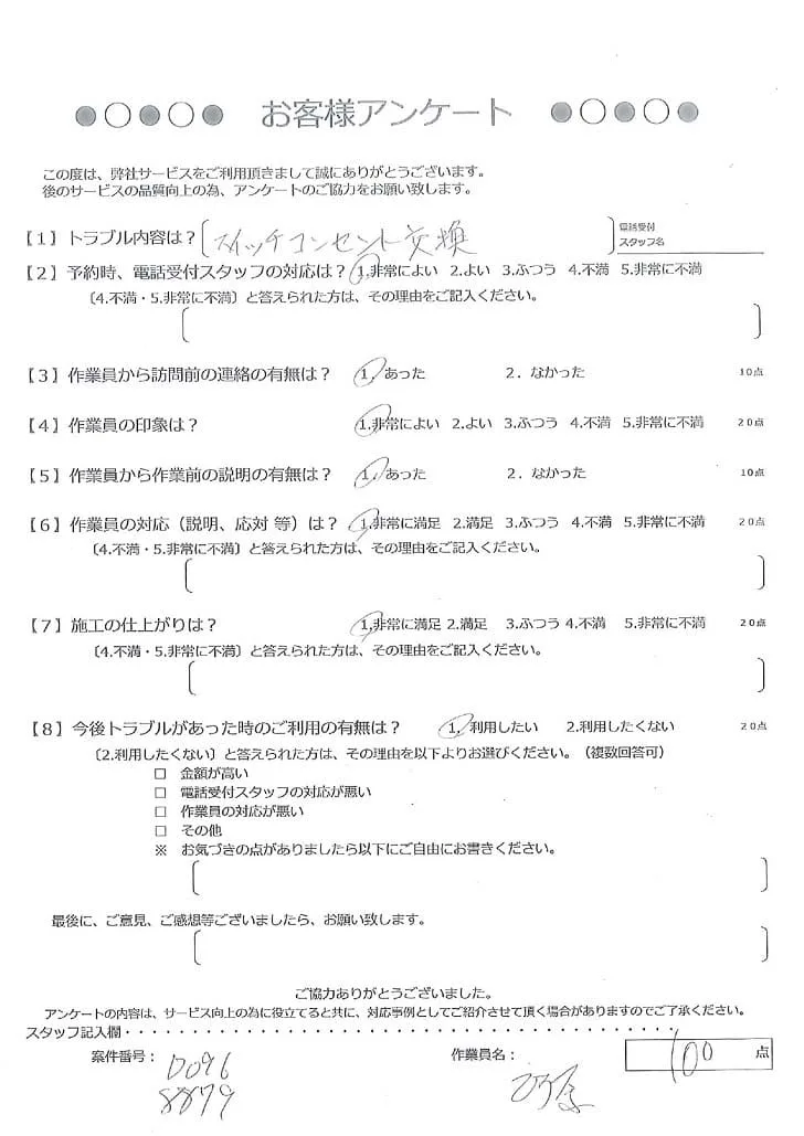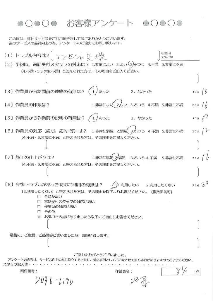 依頼の詳細: コンセントのソケット部分を交換してほしい。