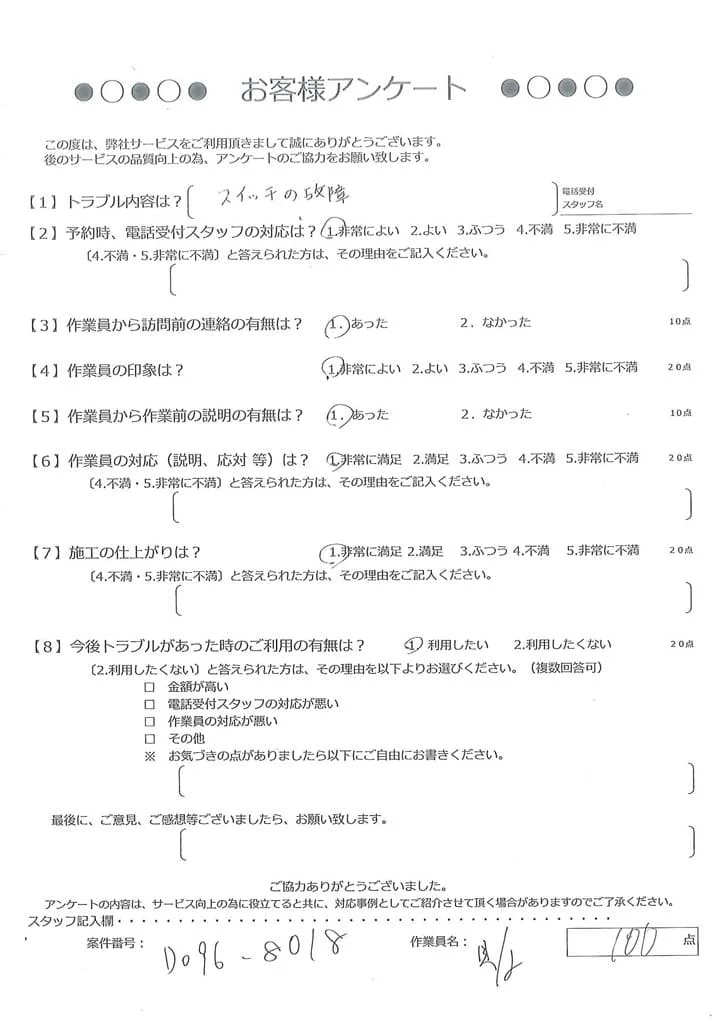 依頼の詳細: スイッチが壊れたので修理をお願いしたい