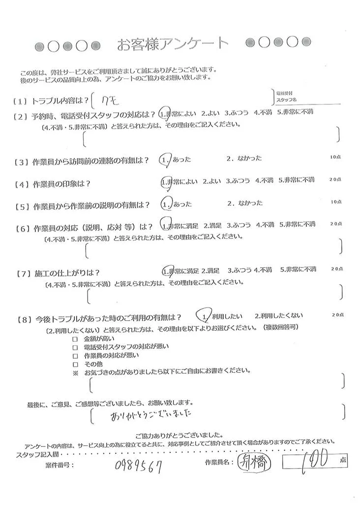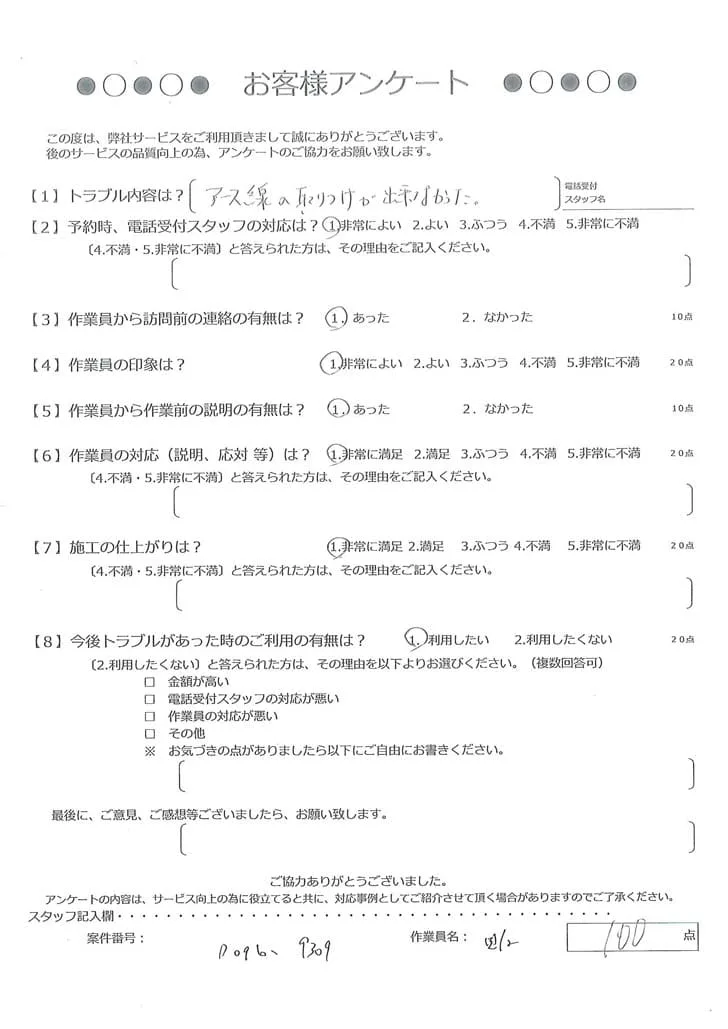 依頼の詳細: ディスポーザーのコードが断裂してしまった。