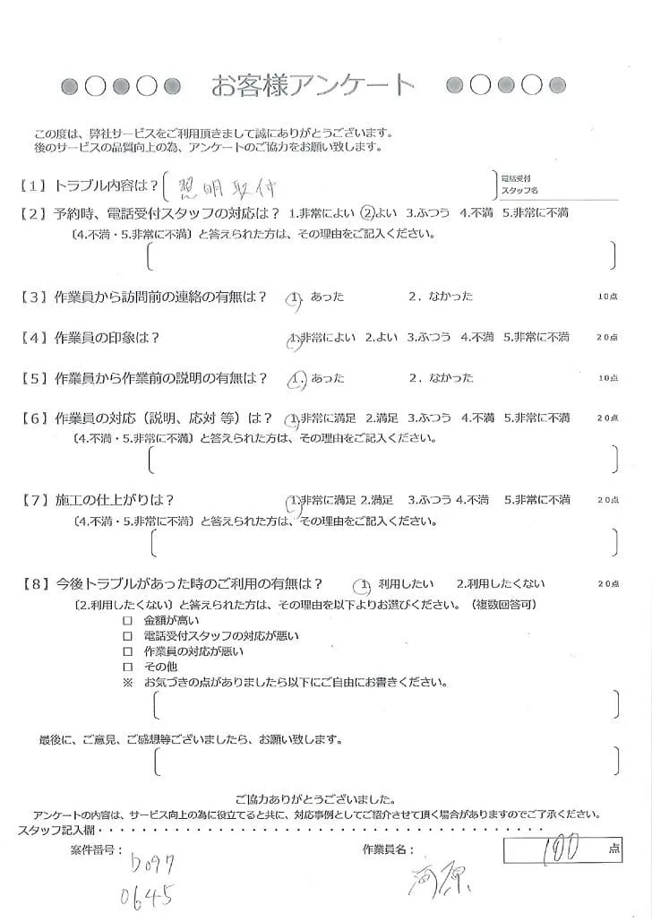 依頼の詳細: 照明がついても、すぐに消えてしまう。