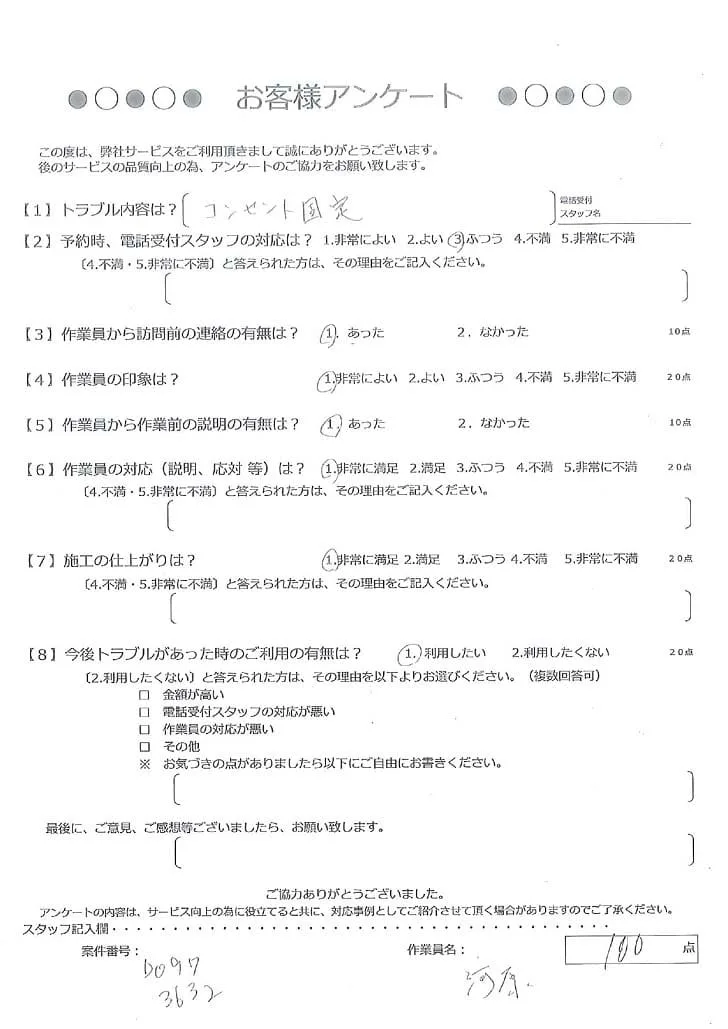 依頼の詳細: コンセントが壊れてしまったので、修理してほしい。