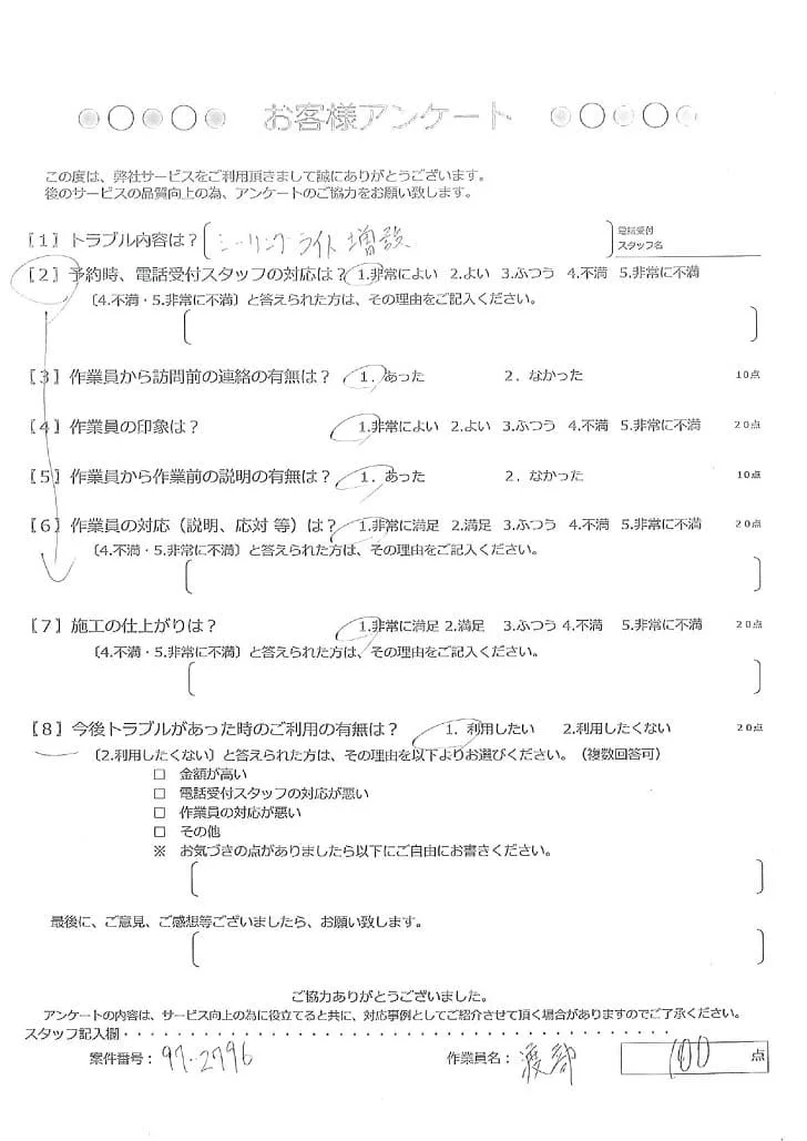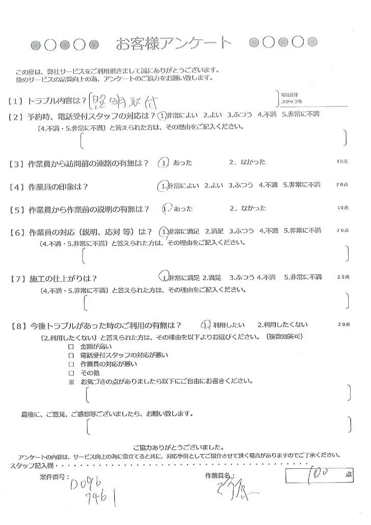 依頼の詳細: 蛍光灯を交換してほしいとのご依頼