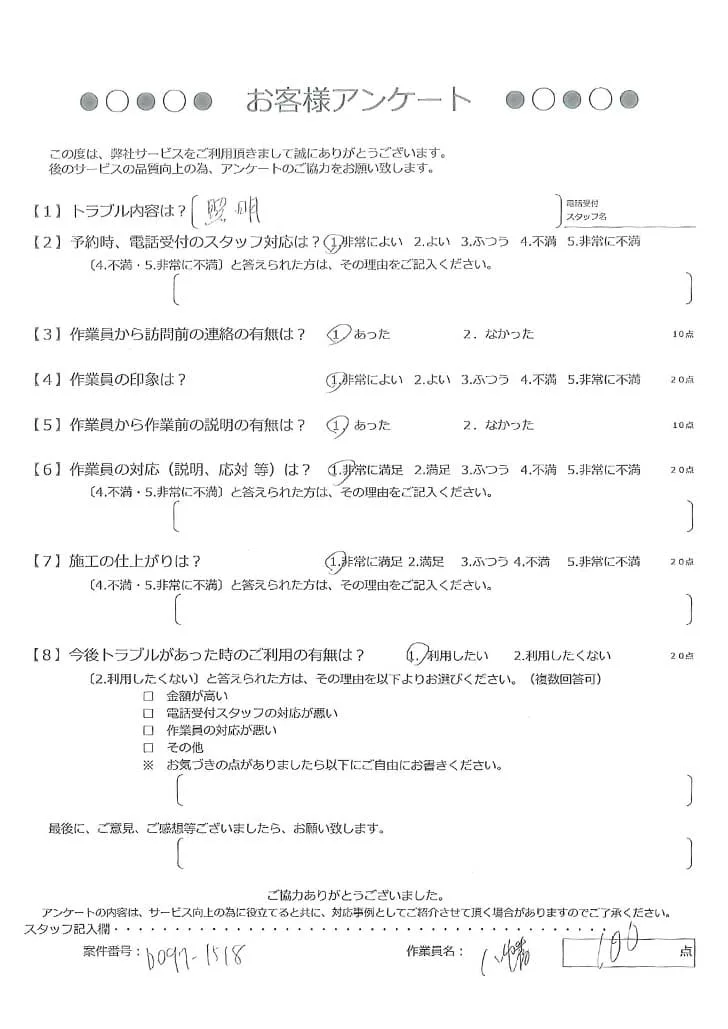 依頼の詳細: リビングの照明が急に消えてしまった。