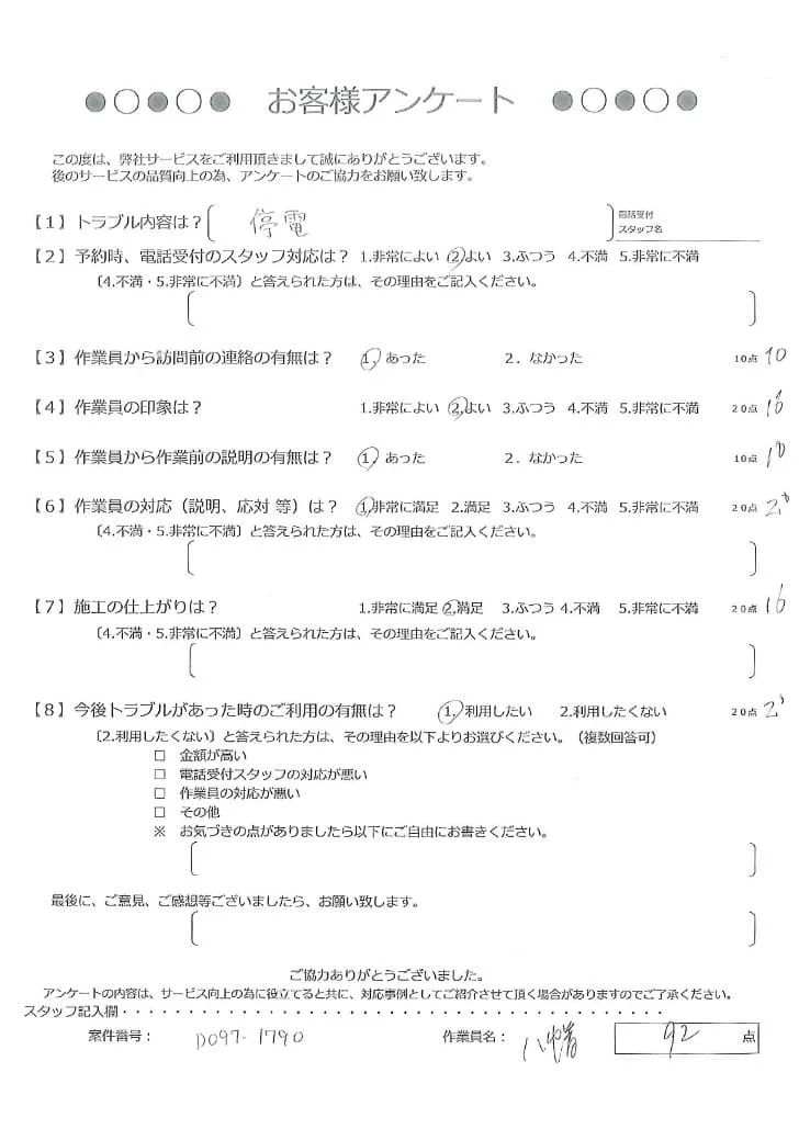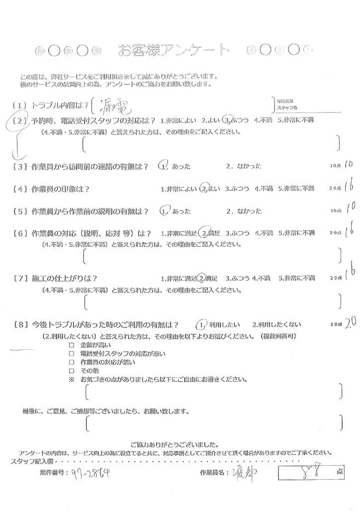依頼の詳細: 子ブレーカーが落ちてしまったまま上がらない